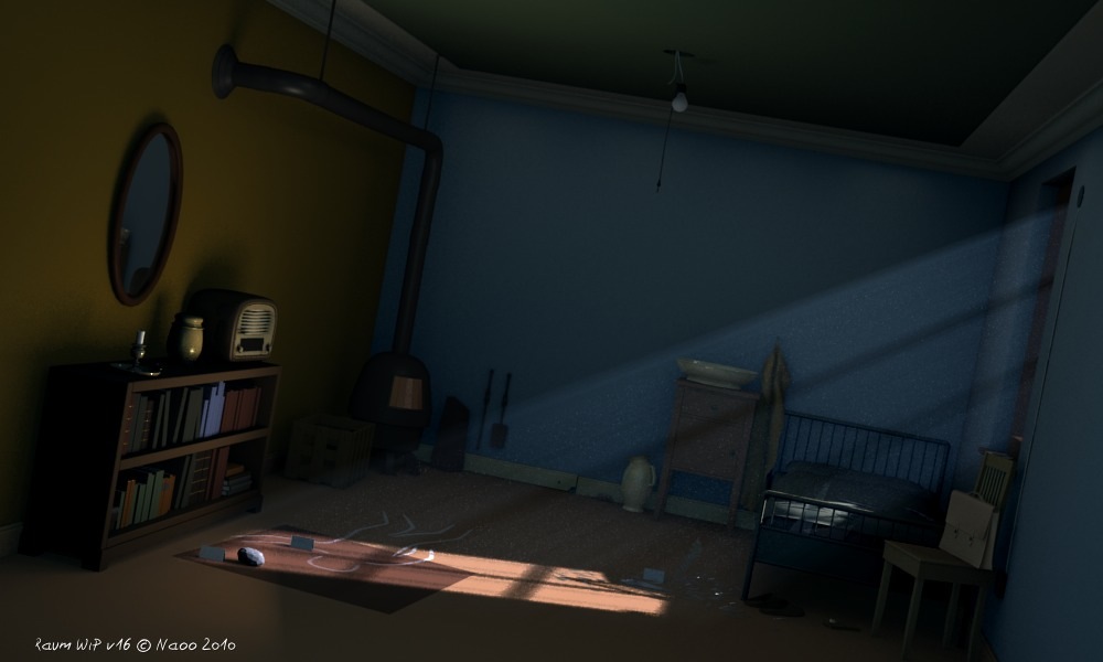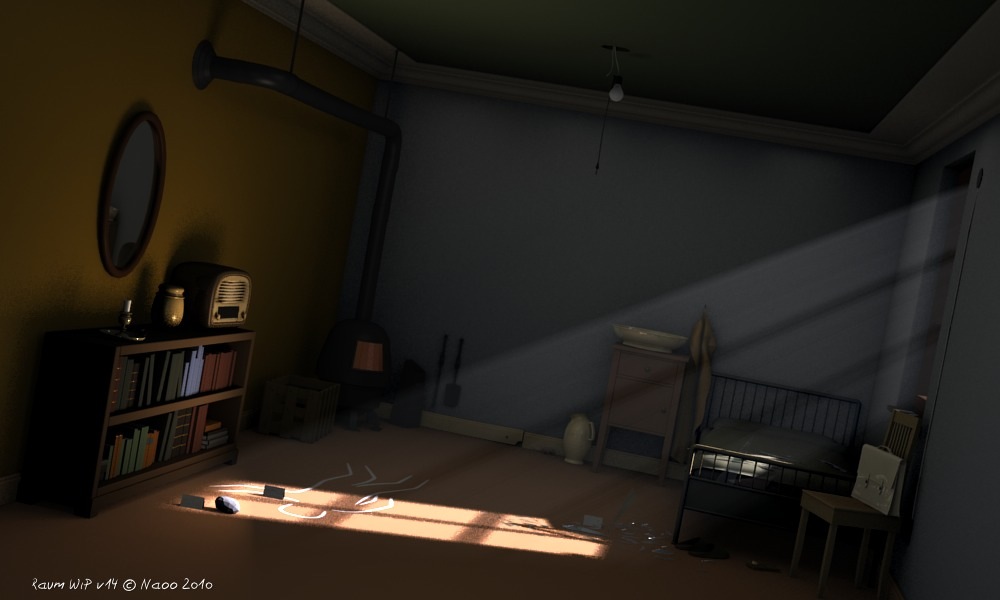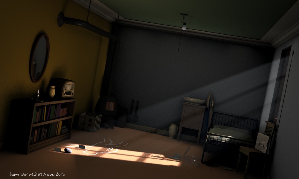 Modell und Render 100% Blender intern.@ Elfmann: Jeep. Dielen hatte ich mir auch vorgestellt, aber auch diese folgen, wie der Putz an der Wand, erst mit der Textur.