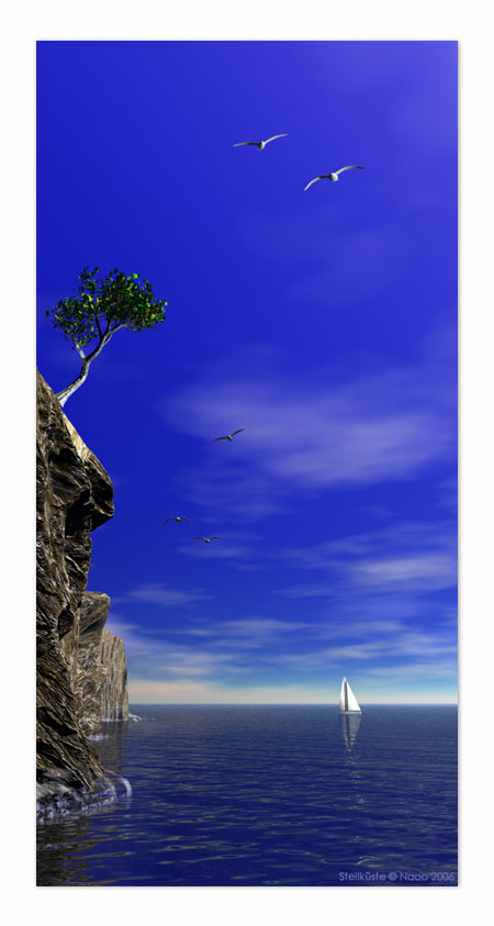 @ MoNrAiL: Aber das "Spielen mit Licht", daaaaauuuuuuert auf meinem betagten Rechner. Zwei Lichter habe ich hinzugefügt: 1. Licht unter die beiden vorderen Möven, dabei fällt auch noch ein wenig gegen den Baum und 2. Licht auf die Segel des kleinen Bootes (selbst gebowlt (schreibt man das so ;-)).