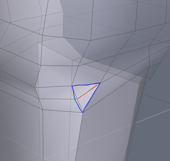 ersetze die beiden Dreiecke einfach durch ein Viereck. Je weniger Dreiecke je besser.