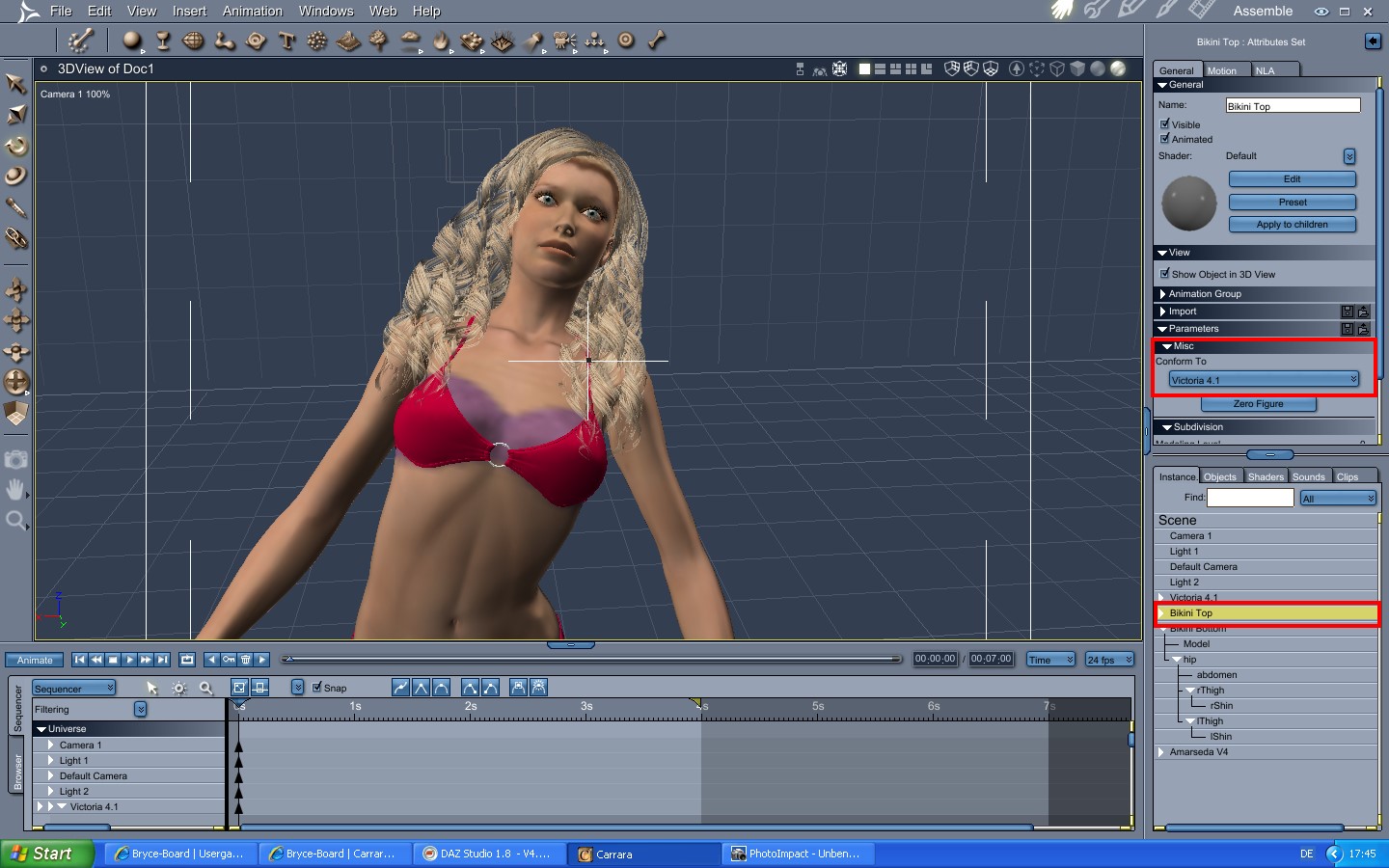 Du kannst jedes Objekt unter dem Reiter misc mit conform to jedem Objekt zuweisen(siehe Anhang)in deinem Fall Bikini anklicken und im Reiter misc auf conform to V4.1 klicken