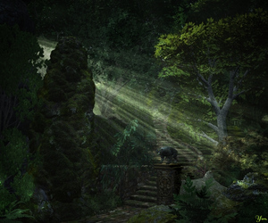 Die Bäume sind ein wilder Mix, der vorne links (und auch einer im Hintergrund) ist Onyxtree, der große im Vordergrund halbrechts ist (nebst diversen anderen) ein Vue-Baum und der kleine auf dem Felsen mit der 'Luftwurzel' ... hmmm, gute Fage, ich weiß gar nicht, wo ich den herhabe.