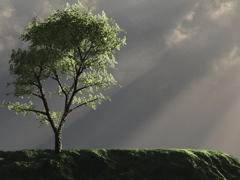 Ich hab mir mal den Spaß gemacht und eine Testreihe aufgesetzt (Ich hoffe, du verzeihst es, wenn ich deinen Thread dazu mißbrauche): Ein Vue-Standardbaum auf einfachem Terrain mit spektraler Atmo und Godrays. Ecos hab ich keine verbaut und das Licht steht erstmal auf Global Ambiente.