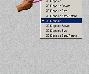 1. Du erstellst einen Fisch, markierst ihn und gehst dann auf Edit --> Multi Replicate. Repliziere ihn 20 oder 30 mal (oder so oft du halt willst). Dein künftiger Fischschwarm sitz jetzt markiert auf einer Stelle. Behalte die Markierung bei und klicke auf das kleine Dreieck unterhalb des Streuwerkzeugs. Im sich öffnenden Fenster markierst du 3D Disperse.