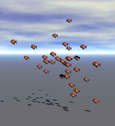 3. Gerendert hast du jetzt einen Schwarm Fische, und zwar ohne daß du jeden einzelnen mühselig hättest platzieren müssen.