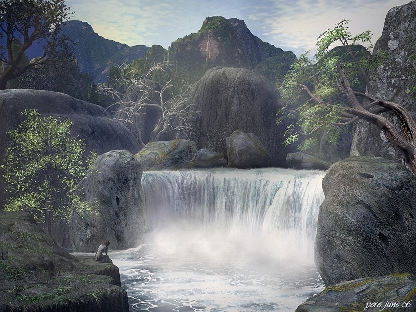 Hmmm ... farblich ist es schon sehr schön geworden, am Wasserfall selber solltest du aber noch arbeiten.