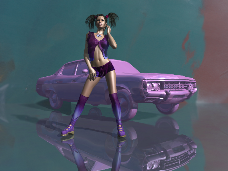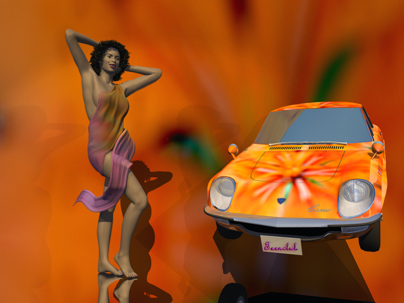 für Deinen Kommentar, habe es diesmal mit airbrush auf der Lackierung versucht. Das Mädel ist diesmal typisch Poser, und das Auto habe ich als freebie gefunden. ![]()