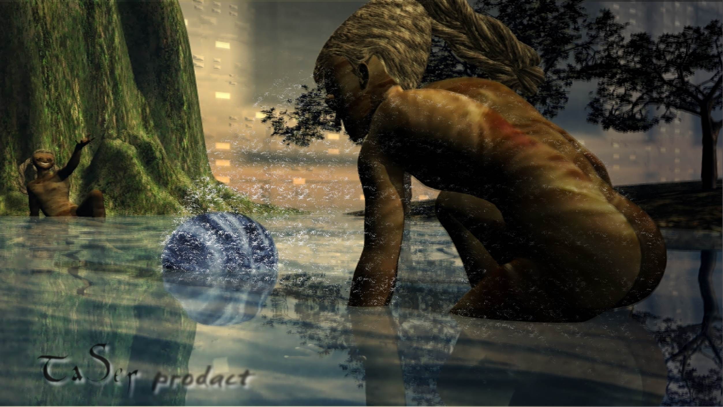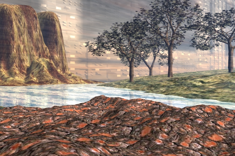 es ist aber nicht vie von dir vermutet eine 2D Fläche sondern ein Terrain eigentlich sollte das wasser auch spiegeln ist woll die falsche Textur. und das mit dem mensch der die wand (ist nur eine lampe ) anschaut ist eine super idee werde ich umsetzen