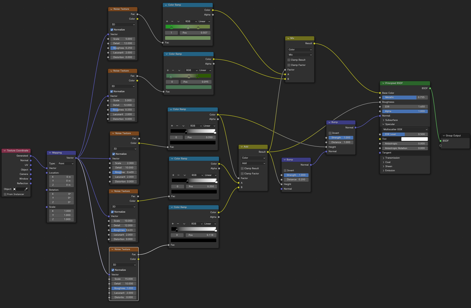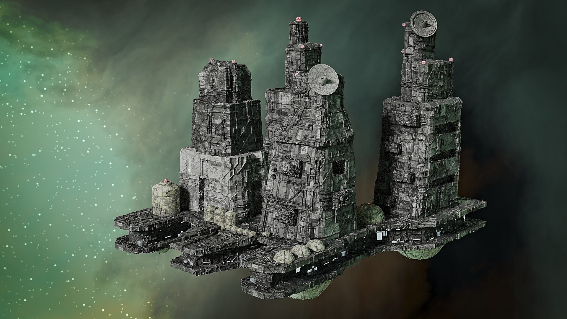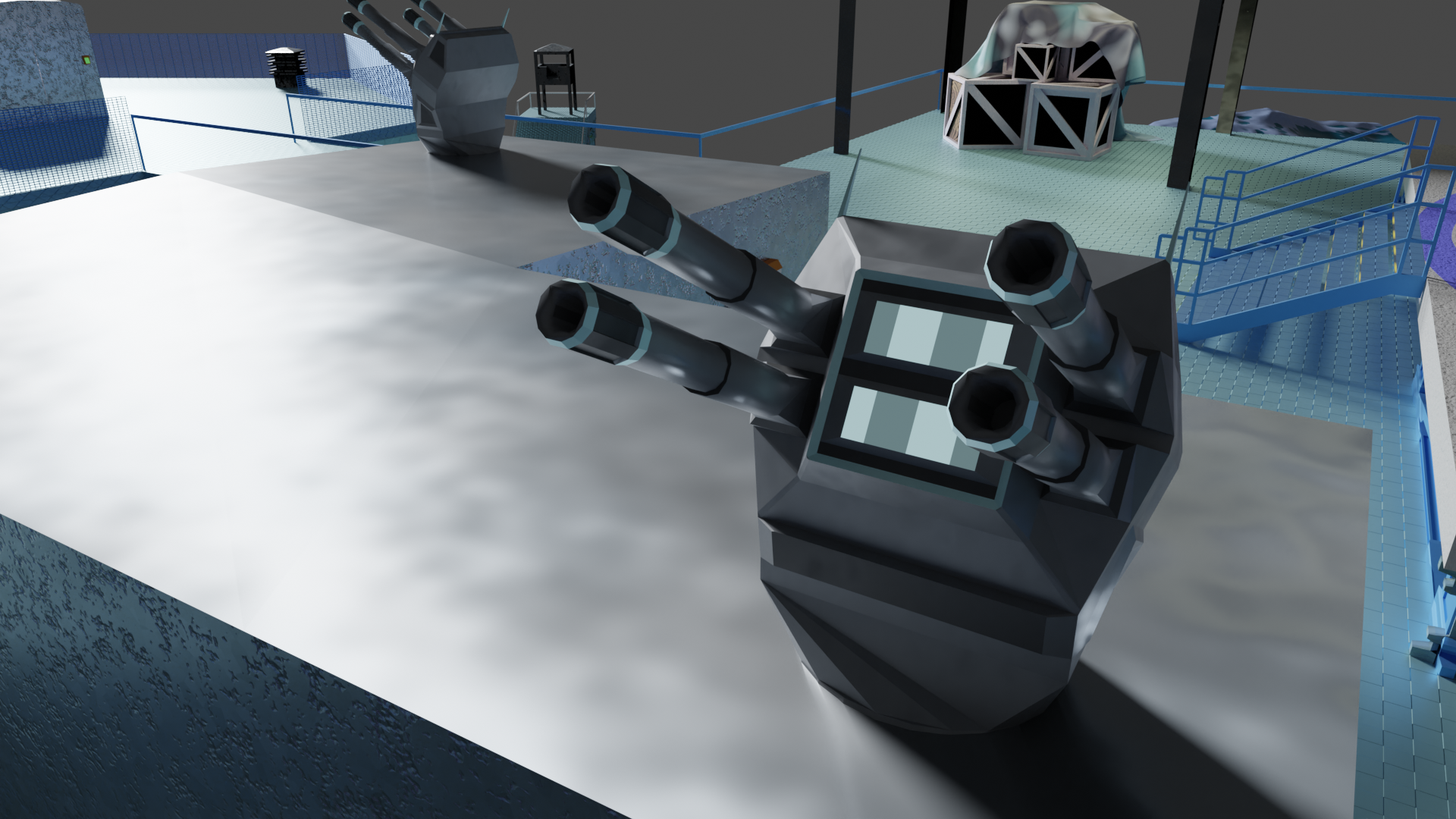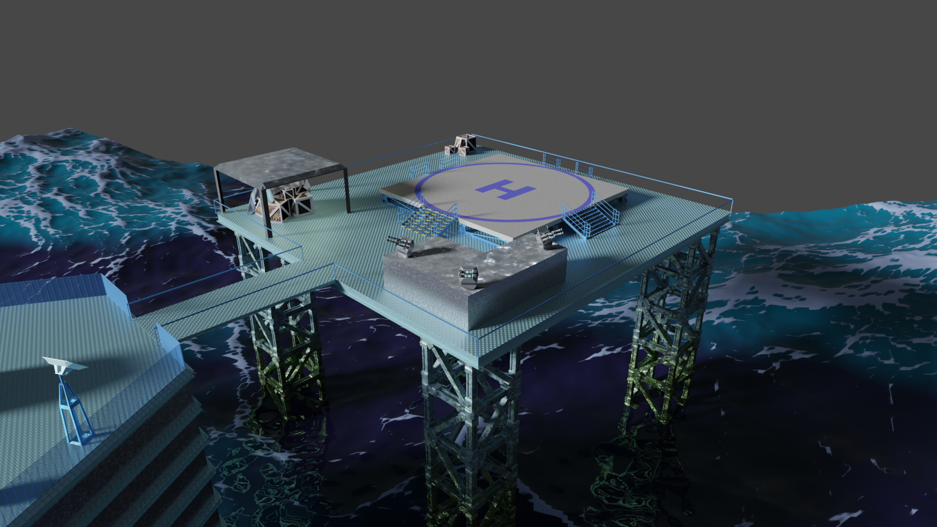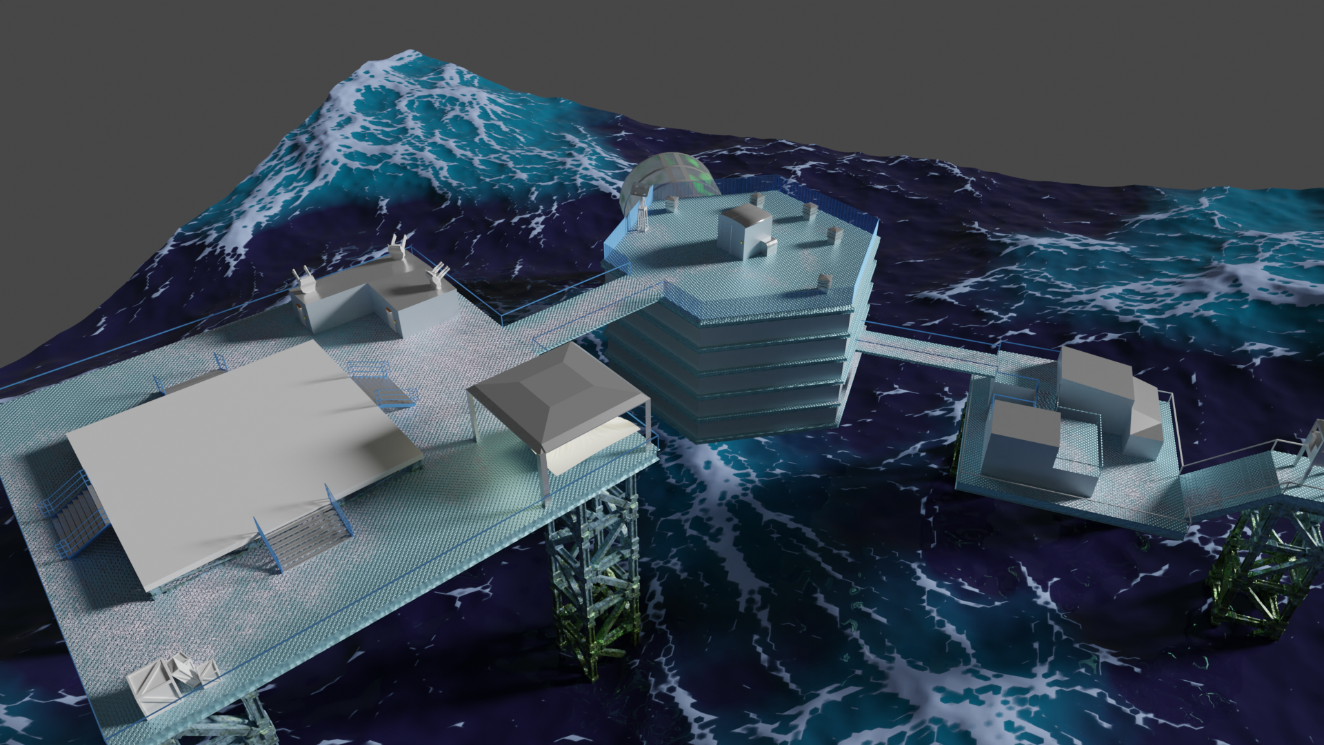 Habe nun so ziemlich alle prozeduralen Texturen, die ich gebastelt hatte, gegen Bildtexturen ausgetauscht und hier und da ein wenig Rost aufgemalt via Maske. Für mich schon weniger uncanny Valley. Wasser ist noch nicht erledigt. Die Dächer sind nun nicht mehr plattes Metal, sondern haben "Wellblech" (ok, latu Texture Welleisen :D), die Träger sind nun rostiges Metal und unten musste ich "Mogeln". Das ist Moos. ![]()