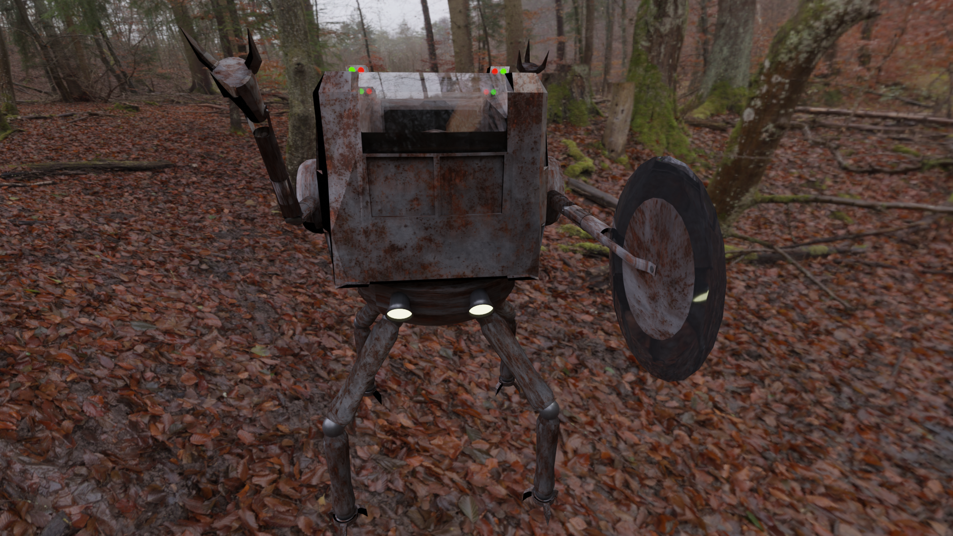 Hier zwei Mechs, welche ich grob nach Tutorial gemacht habe (also meine eigene Variation, in der ich die gezeigten Techniken angewendet habe, anstatt 1:1 zu versuchen nachzubauen). Den einen habe ich in Cycles und Eevee gebaut, den Lumber Mech (es muss ja auch Arbeits-Mechs geben) nur einmal. Weiß nicht mehr ob Cycles oder Eevee. Hier hatte ich das Problem mit der Skalierung des Hintergrundes im Vergleich zur Mech-Größe. Das waren beides sozusagen meine "Erstlingswerke" in Blender. Sind also sehr wahrscheinlich massiv fehlerhaft (und kantig).
