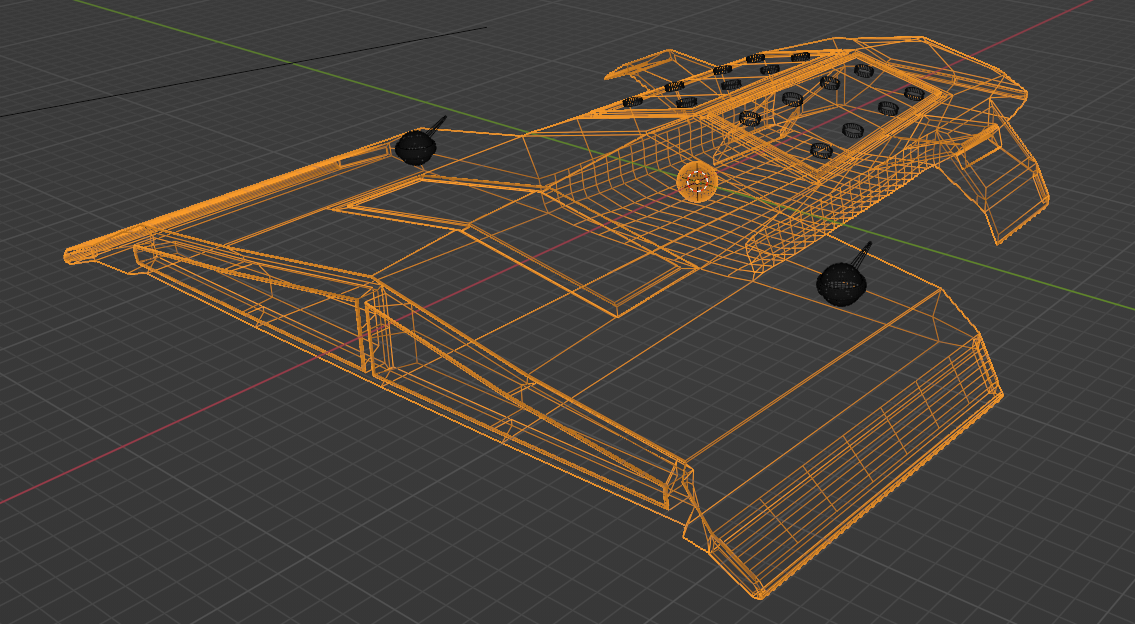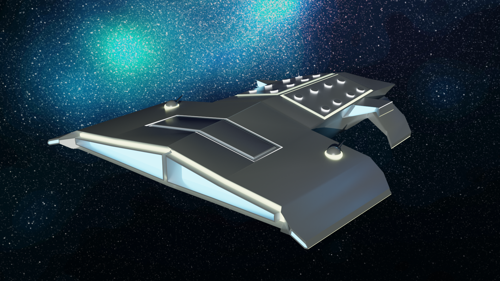 Textur fehlt noch für das Hauptschiff. Da habe ich noch ein Tutorial für "metallische Texturen" parat, was ich mir anschauen werden. Ich hatte eine Metalplattentextur, die sah aber nicht gut aus und ich glaube Metal wäre passender
