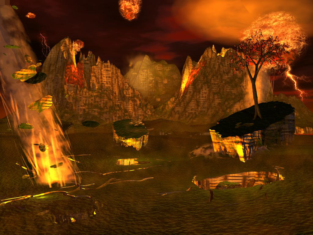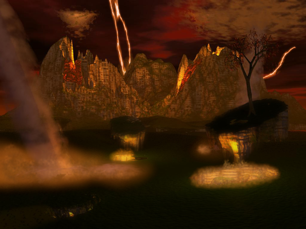 Mit dem Qualm muss ich noch schauen, Screen (was den Staub bringt) hellt zu sehr auf, anderes wirkt dann zu dicht oder zu verdunkelnd. Muss da mal ein wenig am Finetuning werkeln. Wollte ja auch unter Umständen hinter dem linkem Wirbel noch eine dunkle Spur setzen, aber Burn was bei feuer nett kommt für verbennunseffekte macht den grünen untergrund nur schwarz. Mal sehen womit ich Asche simulieren kann, oder Qualm über den Vulkanen.