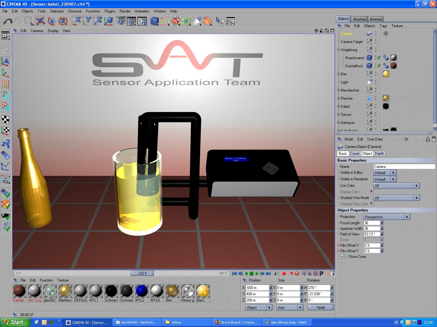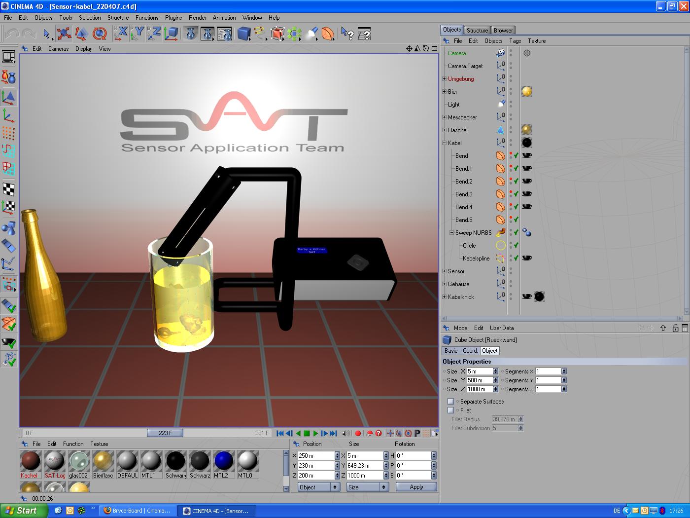 ich weiß dass die Kabelanimation nicht die einfachste ist, das Verbiegen von Stiften und sonstigen Gegenständen (Wirbeläule, Hände...) ist inzwischen kein Problem mehr (zumindest im C4D 10 leider habe ich als Vollversion nur die 9er Version).