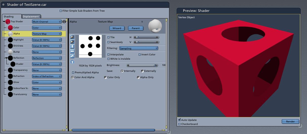 Also ich hab jetzt die ganze Zeit rumprobiert, aber es klappt nicht die Löcher in dem Würfel sind nur Shading, aber es kommt kein Licht raus.