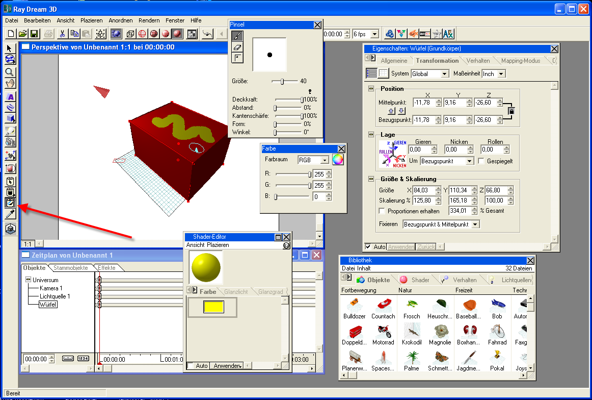 Eigentlich finde ich es ja witzig, ursprünglich war eine 3D-Malen Funktion sogar schon in Ray Dream 3D, dem Urvater von Carrara, ich weiß ja nicht, wieso das zu den Anfängen von Carrara raus genommen wurde.