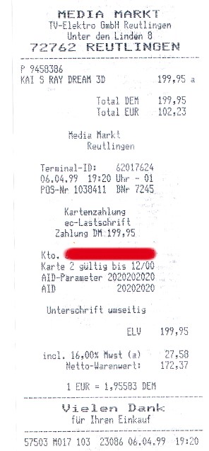 Na dann paß mal auf, was ich hier hab, und man beachte den Kassenbon mit seinem Datum