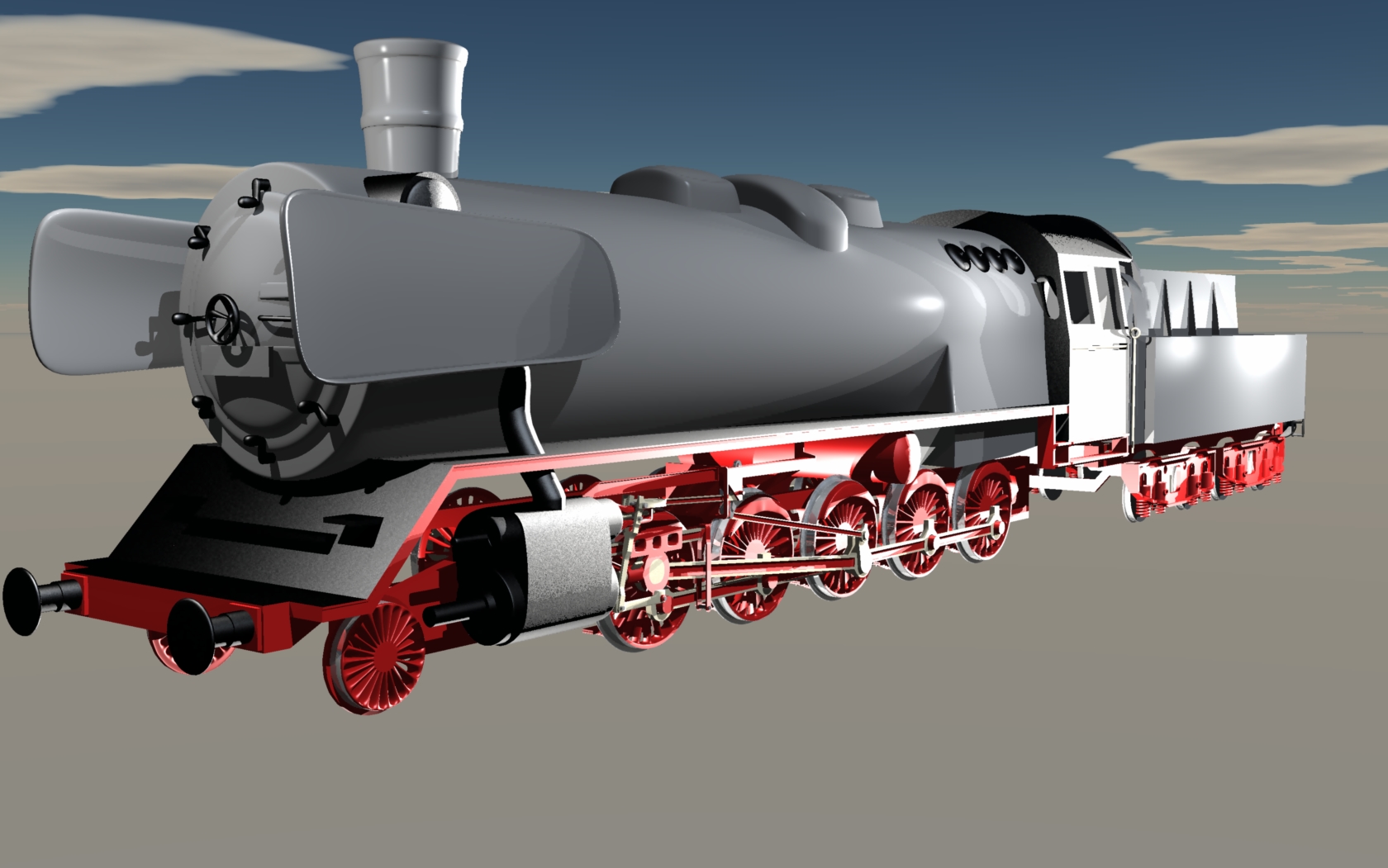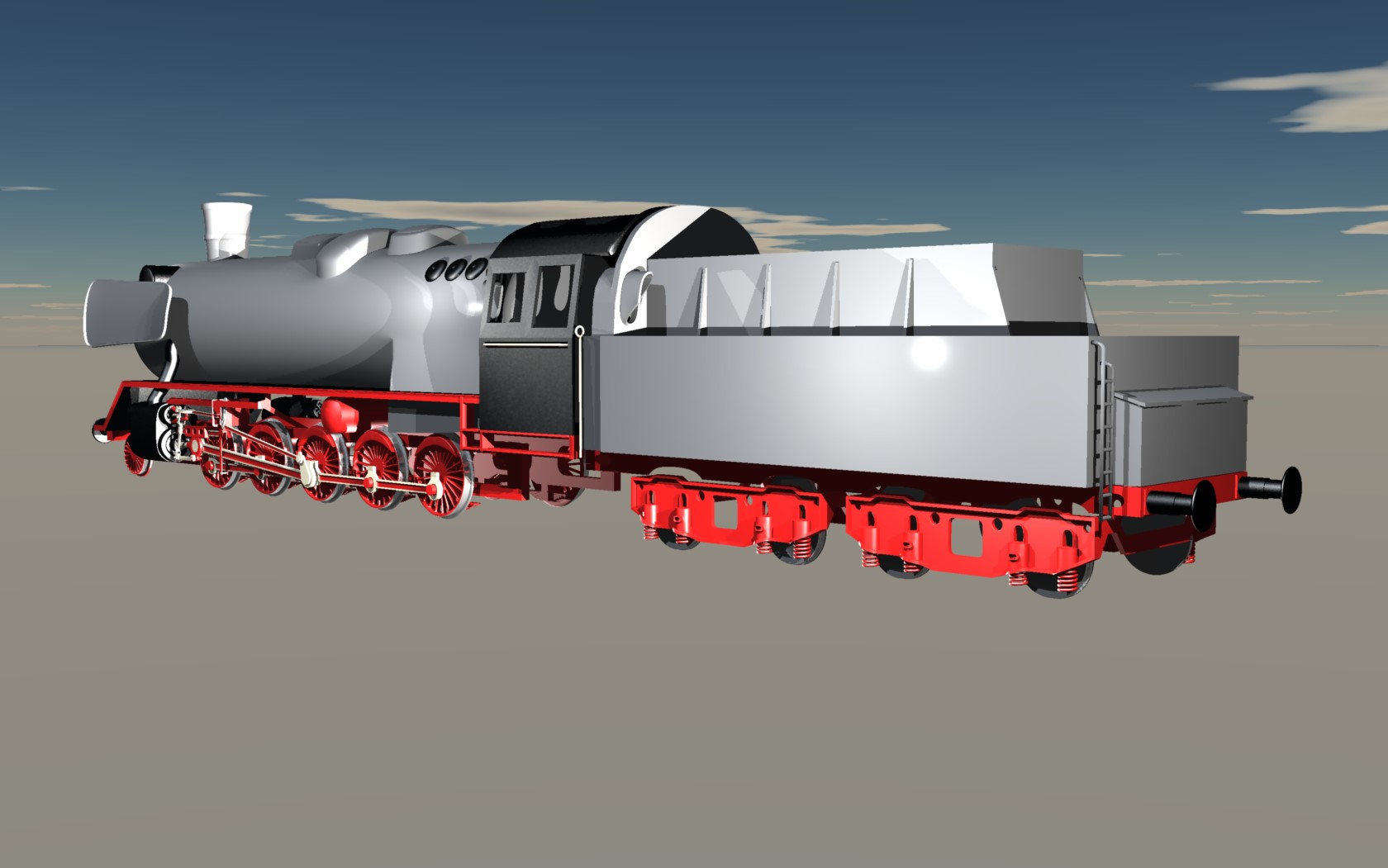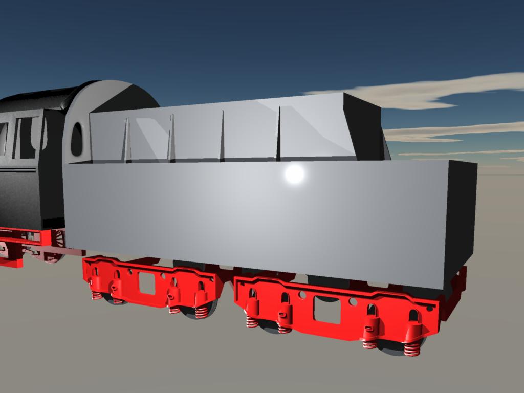 So hier mal ein grober umriss des Tenders mit den dazugehörigen Drehgestellen von denen ich weiter oben ja schon mal was gezeigt hab.