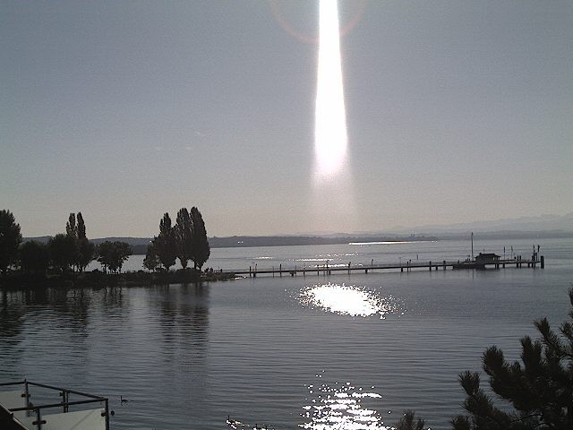 Könnte man meinen, hab das Bild heut zufällig ausgegraben, es ist von einer Webcam am 18. August dieses Jahres am Bodensee. Das Bild wird normal alle 2 Min. aktualisiert, hatte Glück grad zu dem Zeitpunkt mal reinzuschauen. Hier hat die Optik der Kamera und die Stellung der Sonne ihr übriges dazu getan.