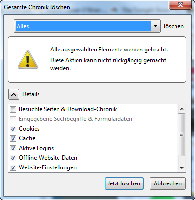 Weiß von euch jemand den Grund, wieso ich denn in diesem Dialog kein Häkchen bei "Eingegebene Suchbegriffe & Formulardaten" setzen kann, damit der Müll mal gelöscht werden kann.
