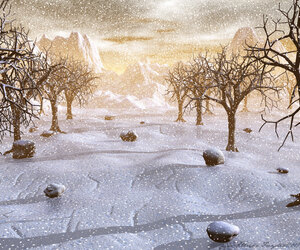 Irgendwie hat es mir gerade der Himmel aus dem letzten Bild angetan ;). Ich habe versucht, den Schnee noch ein bisschen realistischer hinzubekommen und weiter mit dem Baum-Editor experimentiert.