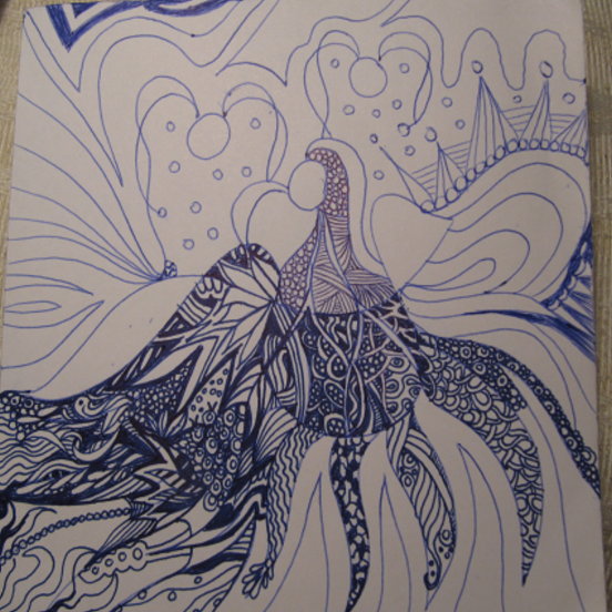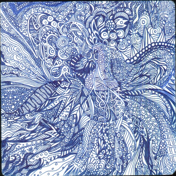 Letzten Sommer habe ich mir einen kleinen 15cm x 15cm großen Skizzenblock gekauft, dessen Papier gut auf Kugelschreiber reagiert. Sprich: wo der Kuli nicht verwischt.