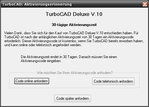 Nach der Installation hat man 30 Tage Zeit einen Aktivierungscode anzufordern.