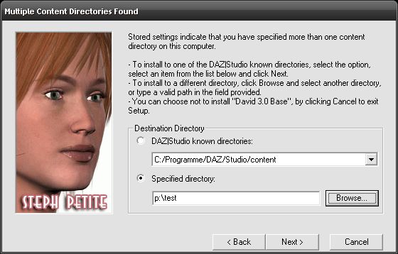" Also, die DS-eigenen Formate wie dsb usw. müssen unbedingt im Content-Ordner sitzen. " Das steht außer Frage. - Aber man kann auch separate Content-Verzeichnisse Anlegen. [Bild] es muss also auch da nicht alles im DAZ Studio Installationsverzeichnis installiert werden. (Weiß jetzt nicht ob das schon immer so war oder neu ist.)
