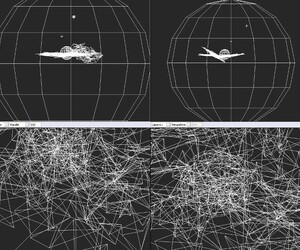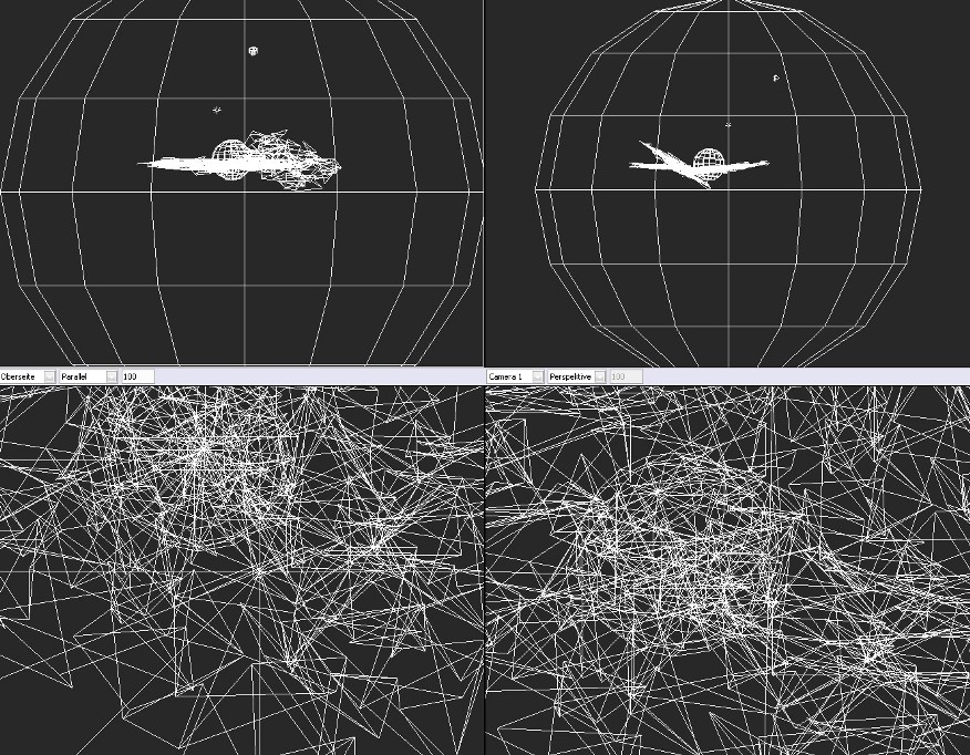 Da gibt’s diesen Punktezufallsgenerator, da habe ich nur die x,y, und z Ache verändert und dann die Glättungsmethode auf Annähend gestellt. Dann habe ich mir die Meshes in die richtige größe gezogen und ein wenig auf einender zu gedreht. Außenrum liegt dann noch eine Große Kugel. So spiegelt sich alles irgendwie in allem.