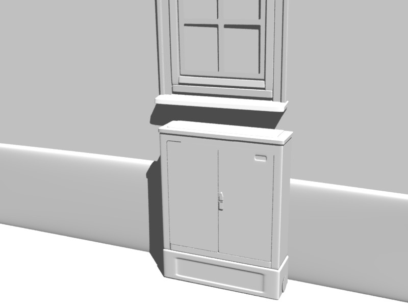 So jetzt habe ich den Kasten endlich fertig. Als nächstes kommt der Hintergrund und der Gehweg dran. Da wird die Textur auch ein Kunststück schätze ich mal.