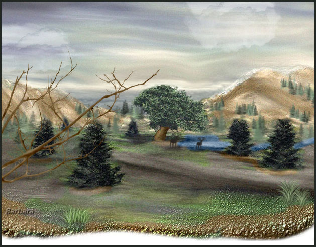 Ich habe mal versucht ein in Bryce erstelltes Bild mit Hilfe von Postwork in ein Gemälde zu verwandeln....wie gesagt....ein Versuch *g* Ich versuch jetzt mal einen Dateianhang zu machen, mal sehen ob es klappt.