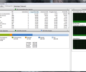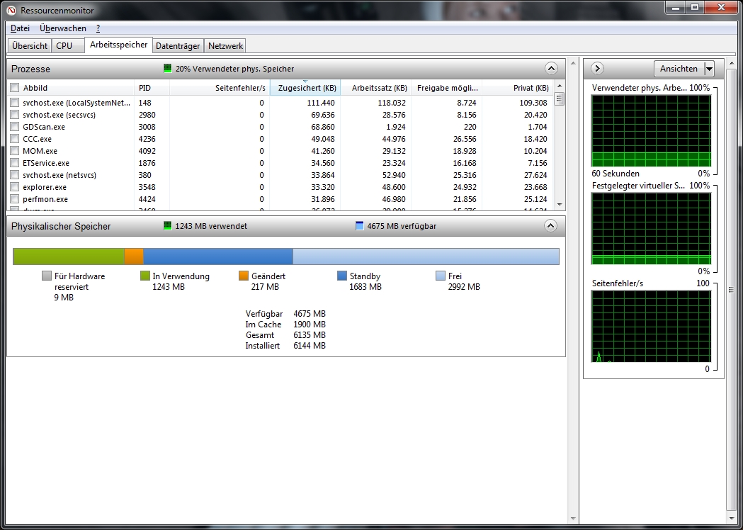 Sortier die Ansicht des Speichers mal nach "Zugesichert", vielleicht kannst da irgendwas raussehen.Anbei mal mein Abbild zur Ansicht. Wie Du siehst, ist die Speicherauslastung bei mir um einiges humaner, obwohl ich rund 20 Prozesse mehr am laufen habe.