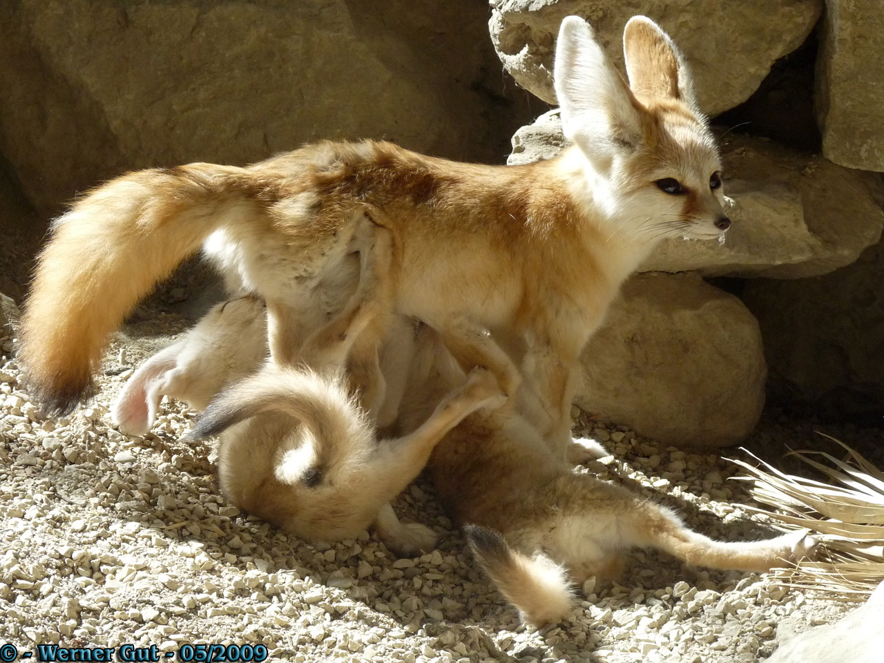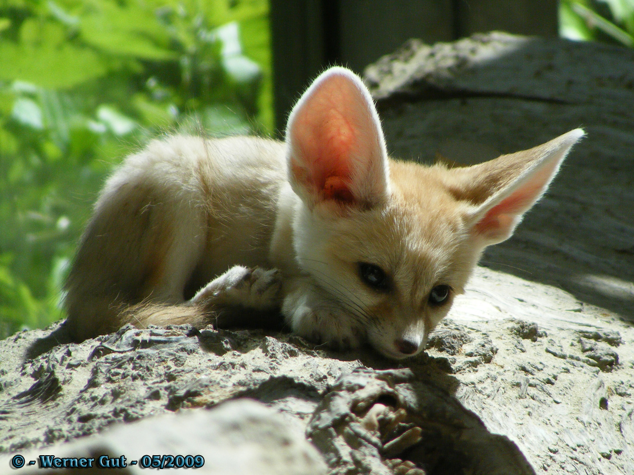Neben den Löwen sind dann gleich die Fenneks. Papi wollte wohl seine Ruhe haben und lag im Außengehege friedlich auf einem Felsen.