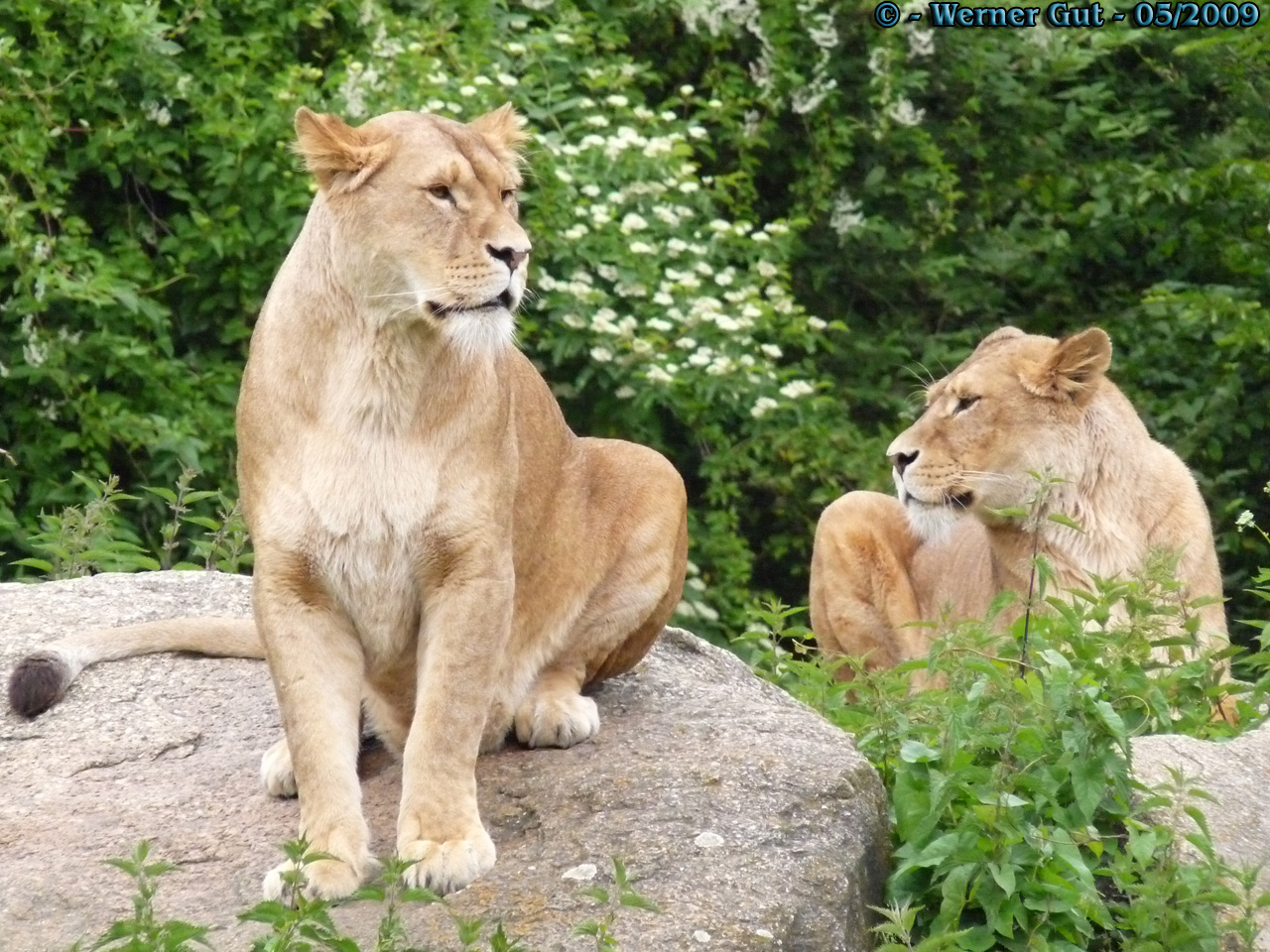 Als erstes begrüßten mich gleich die zwei Löwendamen. (der gnädige Herr hatte sich hinter großen Steinen versteckt. Unerreichbar für jeden Fotografen.
