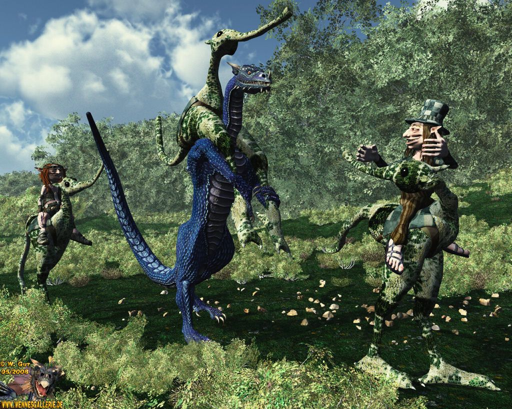 Die Figuren sind Teo, Galkowitz und die Reittiere 'Reipus' von Nursoda - der Drachen ist der MillenniumDragon von DAZ.