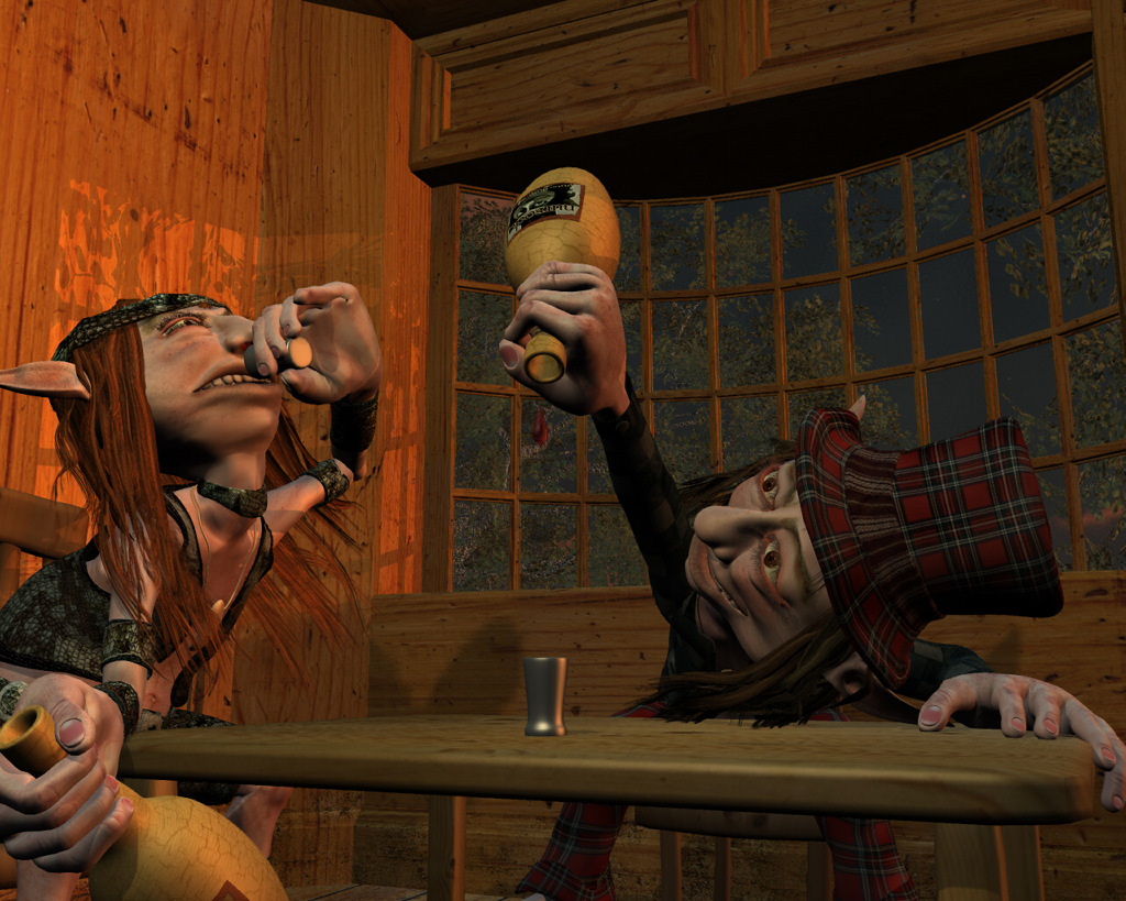 Die Szene ist in Poser gemacht. Von Vue stammen die Bäume hinterm Fenster, das Licht und zum guten Schluss das Rendering.