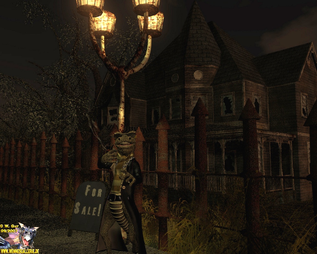Herr Sal A. Mander von Shark-Credits & Co. Gmbh & Co KG wartet immer noch auf kauffreudige Kundschaft für das Anwesen Mockingbird-Lane 13.