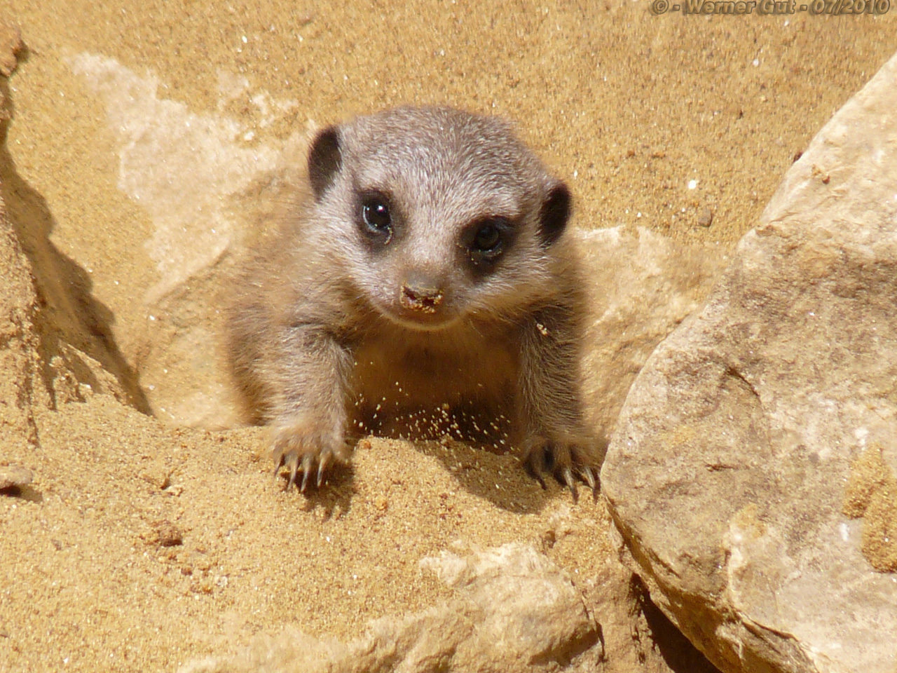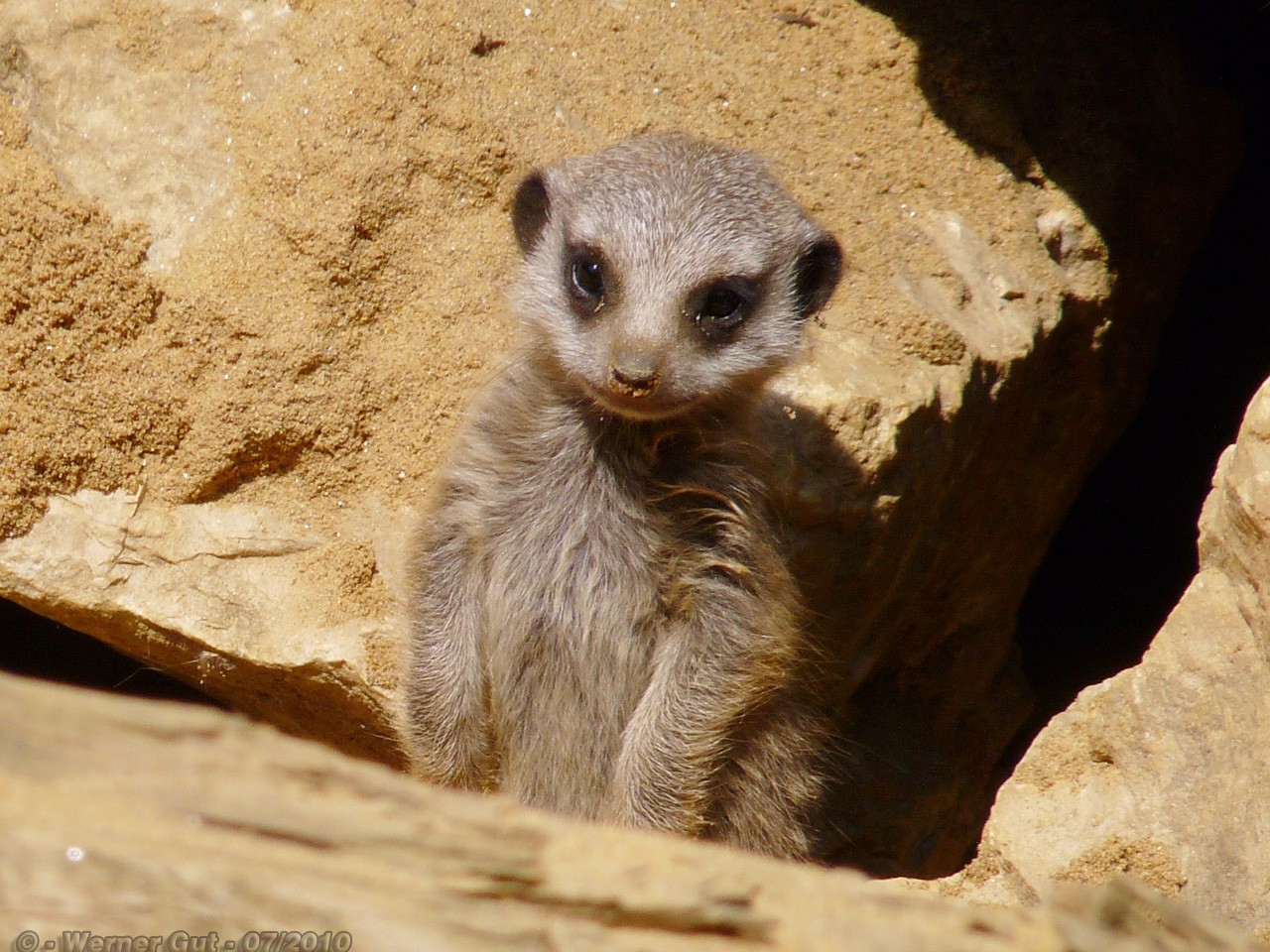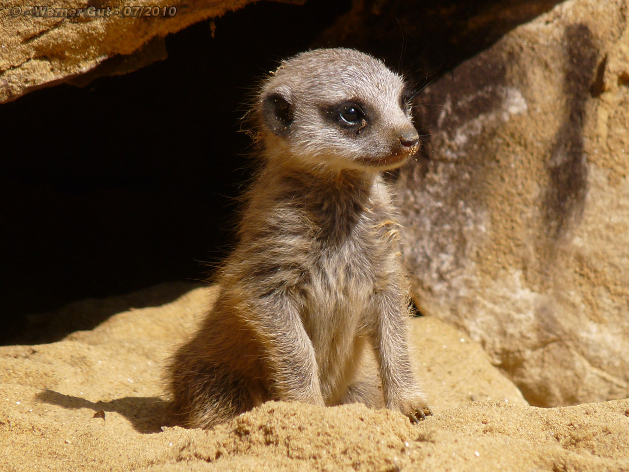 Doch die Erdmännchen waren nicht untätig und haben schnell wieder für Nachwuchs gesorgt. Die sind nun so weit dass sie ihre Höhle verlassen und durch das Gehege tapsen.