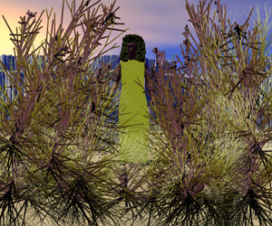 erste Mal, daß ich was im DAZstudio gemacht habe, als ich auf bryce zurückging, erschien dann Tante Vicky prompt auf der Bildflächen....Oki, hab ich m ir gedacht, dann noch ein paar Bäume drum und ein Kleidchen von Lattice(deshalb versteckt sich die Tante Vicky, sie schämt sich wegen des Kleides) und fertig ist...