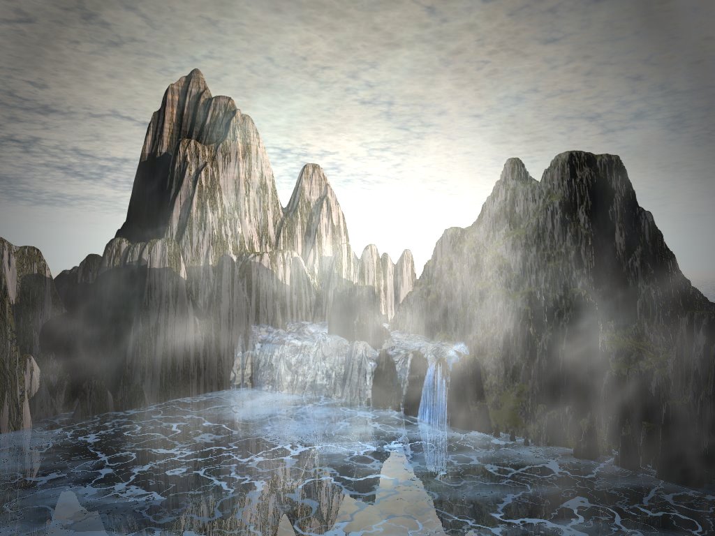 Hier eine Flame aus Apophysis in einer bryce-Landschaft. -