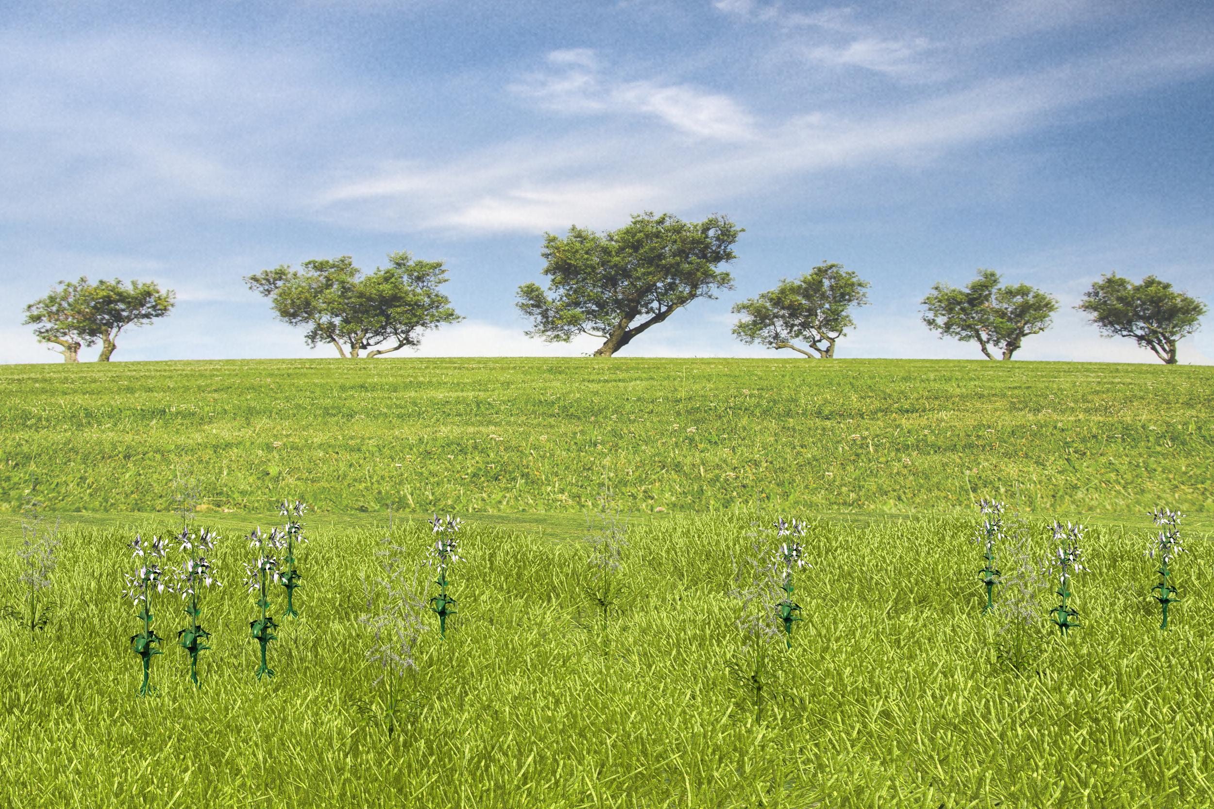 Wenn man mit bryce anfängt...oder auch mit einem anderen 3D-render Programm...ist man...in der Regel froh...wenn man am Anfang ein Gelände mit mat auf eine Bodenplatte mit mat platzieren kann...ohne daß das teil schwebt...wenn man es dann noch schafft...nen Baum da reinzu stampfen...ohne daß er auf den Füßchen stelzt...ist man ja sowas von happy...später schraubt man dann noch am Himmel rum...und fühlt sich wie ein King...allerdings ist man meist mit dem Grass nicht zufrieden...auf der Bodenplatte auf"gemalt"....na ja...dann sucht man nach nem Tutorial...das einem erklärt wie man in bryce echt wirkendes Grass hinbekommt...denn das Zeug aus den presets ist für alles mögliche gut...nur nicht für Grassflächen...und das Tut mit dem "verspikten" Gelände...tja...das sieht vielleicht gaaaaaaaaaaanz weit hinten erträglich aus...im Vordergrund...Fakirwiese...deshalb hab ich jetzt in meinem bryce BBQ und grill rumgebrutzelt...und...ich glaube...was ziemlich leckeres hinbekommen...(der Hintergrund ist allerdings ein Photo...)