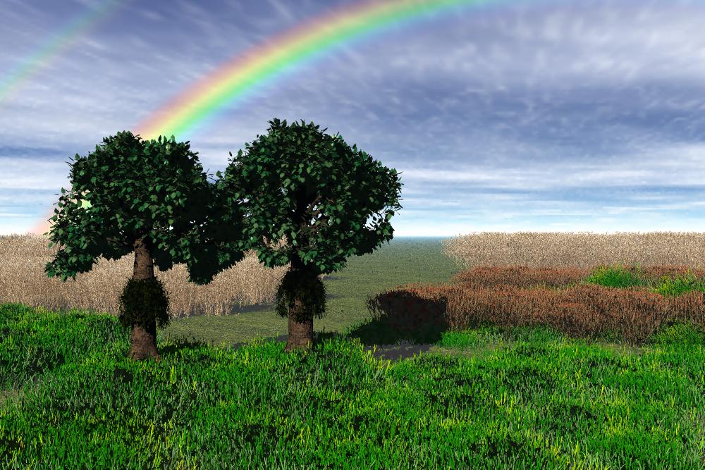 Natürlich geht nicht nur Grass mit Bäumen in bryce...es lassen sich auch Kornfelder damit halbwegs realistisch gestalten...und...Ihr glaubt es nicht...auch Bäume kann man mit dem tree-Editor erstellen...mal was ganz neues...