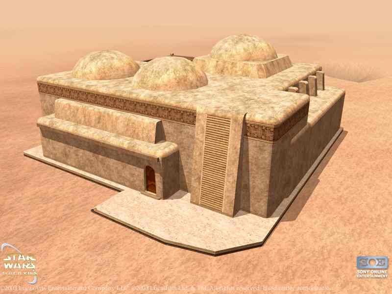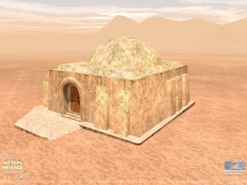 ich hab mich mal an ein Tatooine-Haus gemacht - ist leider nix geworden, höchstens aus der Ferne zu gebrauchen. Die texturen sind auch, gelinde gesagt, sch****... ![]()