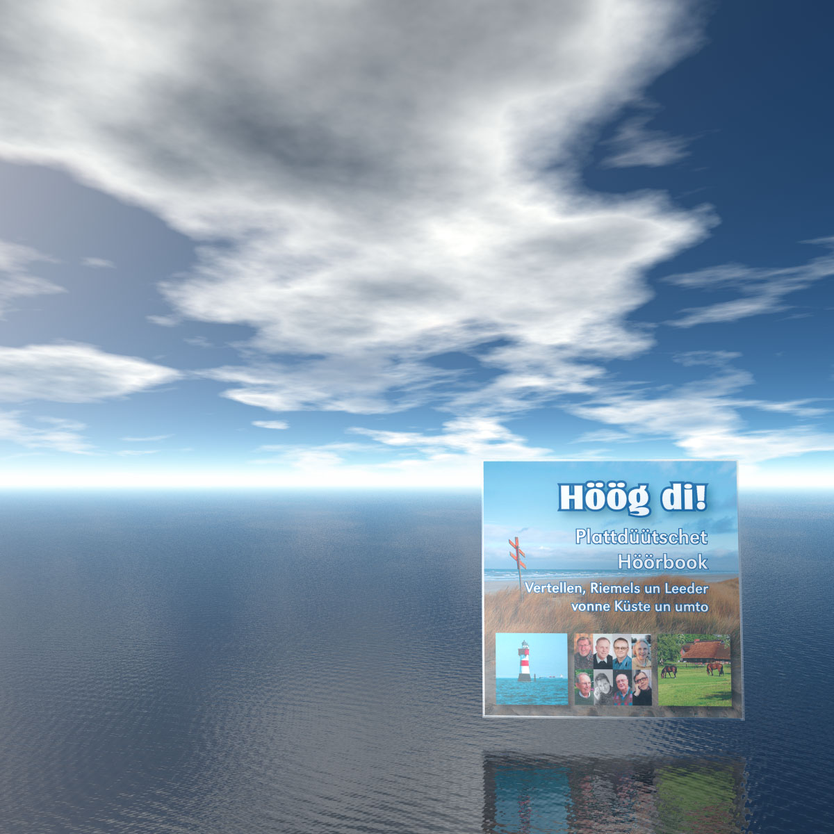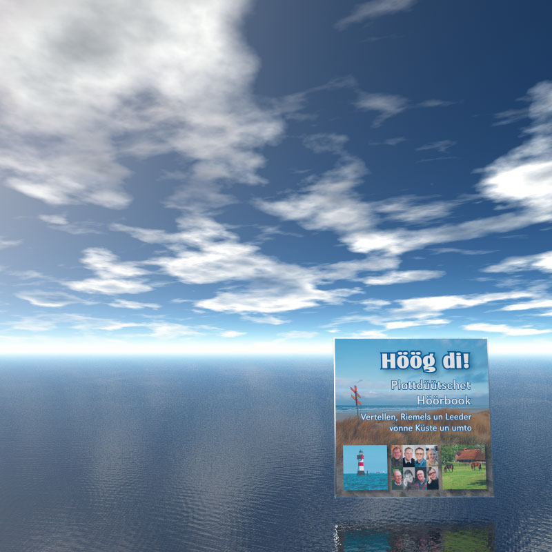 Mein erster Bryce-Versuch... Es handelt sich um um eine Einladungskarte für eine Hörbuch-CD. Das Booklet habe ich im Indesign erstellt. Den Hintergrund habe ich in Bryce erstellt. Für den Schatten der CD auf dem Wasser habe ich ein Quadrat eingesetzt. Dann habe ich das Booklet als PDF exprtiert und mit dem Bryce-Fond im Photoshop zusammenkopiert. Den Text habe ich im Indesign dazugebaut.