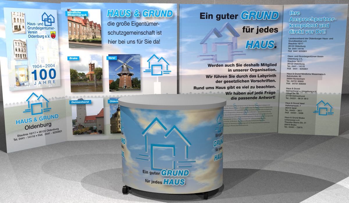 Sowas will der Kunde jetzt haben. Der Stand wird ca. 4,4 m breit und 2 m hoch, sowas will ich wegen der Auflösung gerne mit Bryce machen. Meinen ersten Versuch habe ich mit angefügt.
