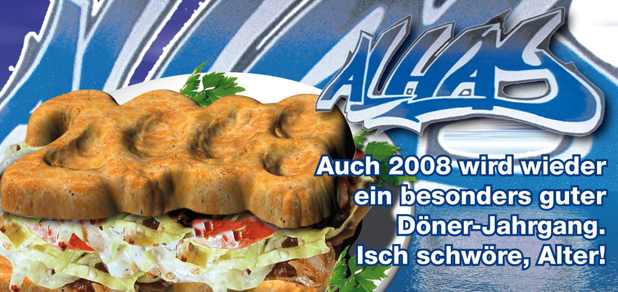 Genau ein Döner in Form einer 2008. Kommt der Gag rüber? Mehr kippen wollte ich das teil auch nicht, da sonst der Inhalt verdeckt wird. -