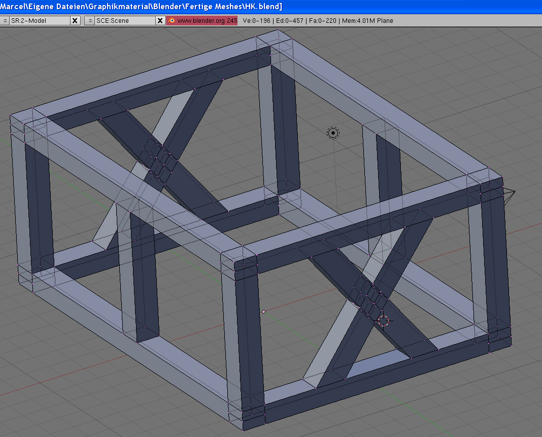 Ich sollte vielleicht auch noch erwähnen dass die Streben in der Mitte wieder Halb, Halb sind. Somit bin ich gezwungen an den Überlappungsstellen Vertices zu setzen um das modellieren zu können.