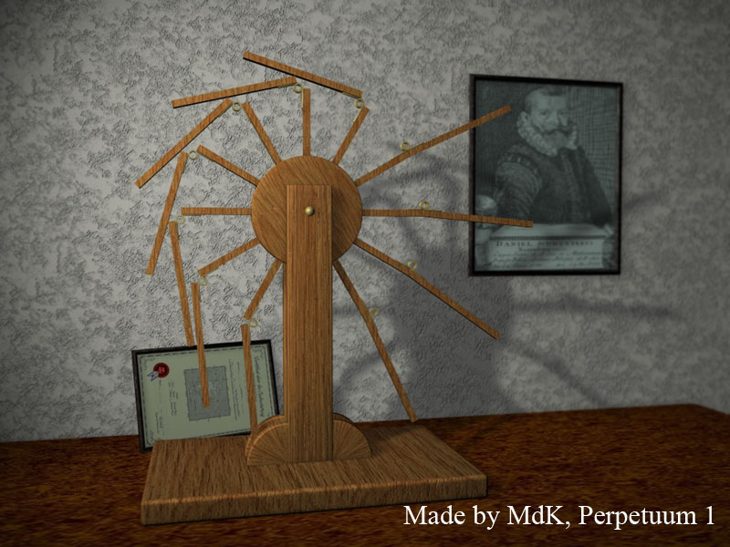 Da die ganze Konstruktion nur eine sehr kleine auflagefläche hat, entsteht auch nur wenig Reibung und so erhält man den Eindruck , es könne sich um ein Perpetuum-mobile handeln....