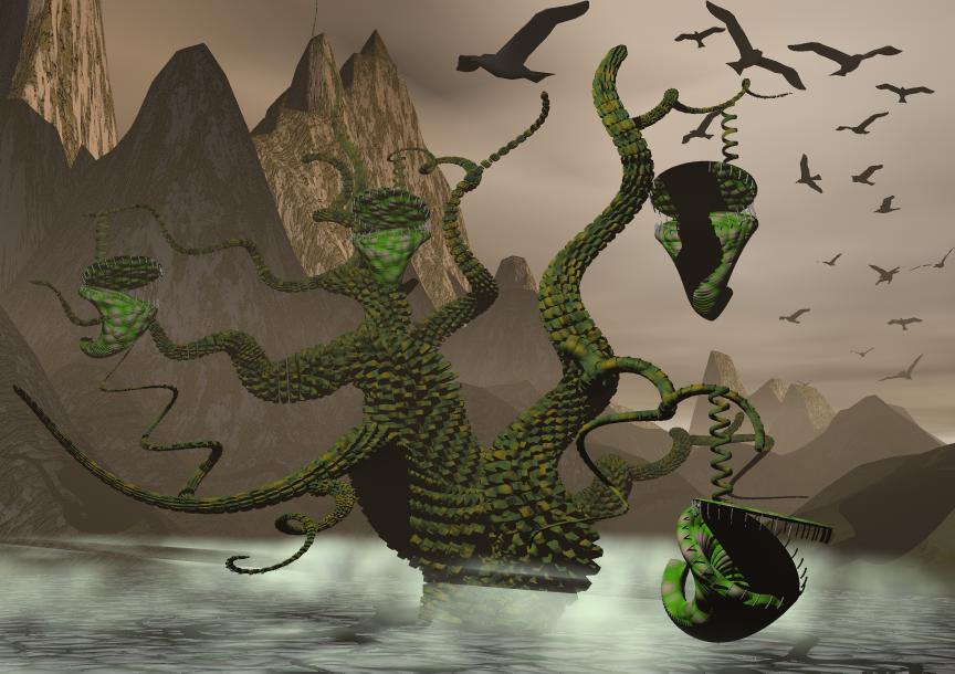 hab mich mal intensiver mit dem Thema Multireplikation auseinandergesetzt. Der Baum besteht aus einer Vielzahl von Repliktionen eines Zahnrades das im Bryce Standart als Objekt vorhanden ist.