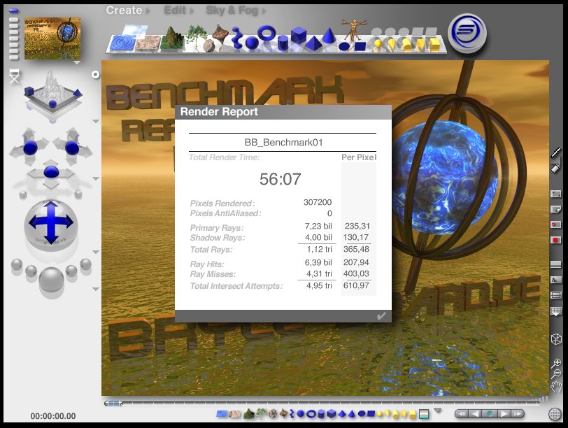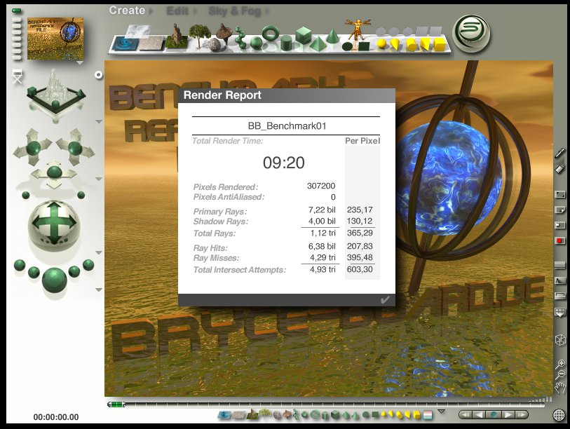 Also, hab heut mein Bryce 6.1 bekommen und gleich mal des Benchmark deswegen gemacht.