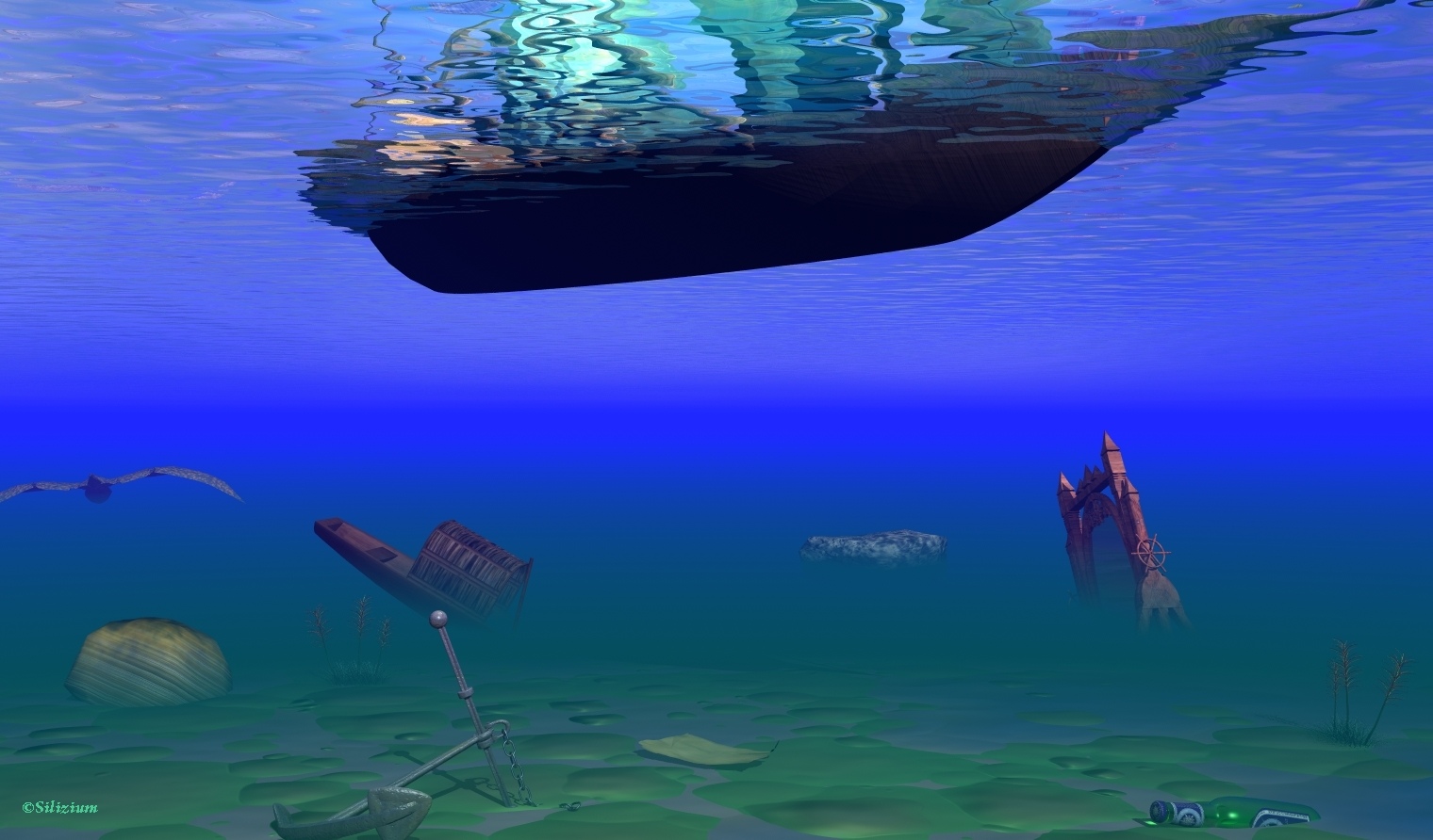 Möchte Euch das Endergebniss natürlich nicht vorenthalten, da ich eigentlich dank dieses Forums überhaupt ins 3D-Komponieren reingekommen bin. Die Sonne wäre besser wenn sie die Lichtbrechung mit Strahlen im Wasser machen würde aber das hab ich nicht hingekriet. Hmm... ich seh grad.. ein paar Luftblasen könnte ich noch reinbringen.