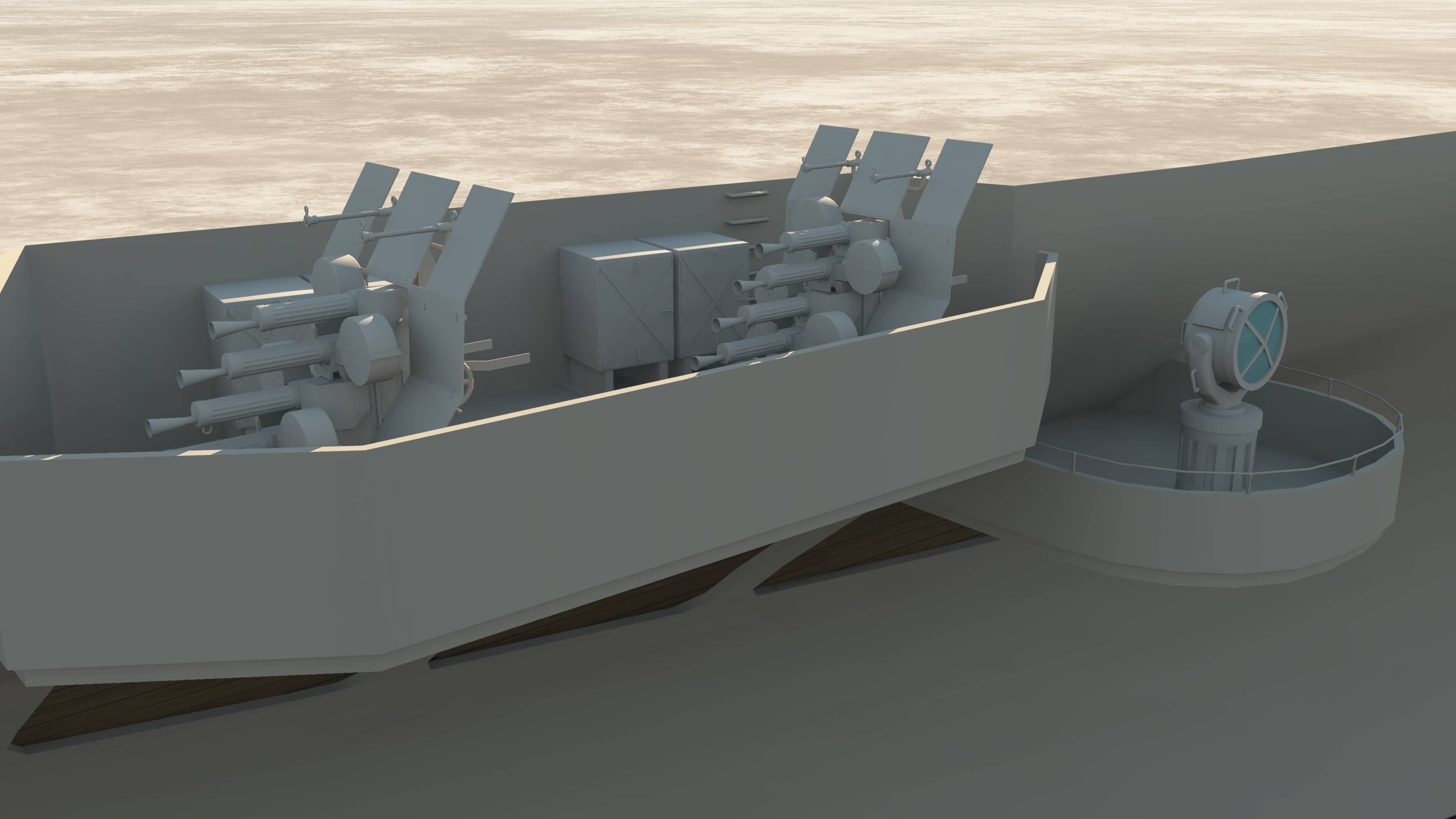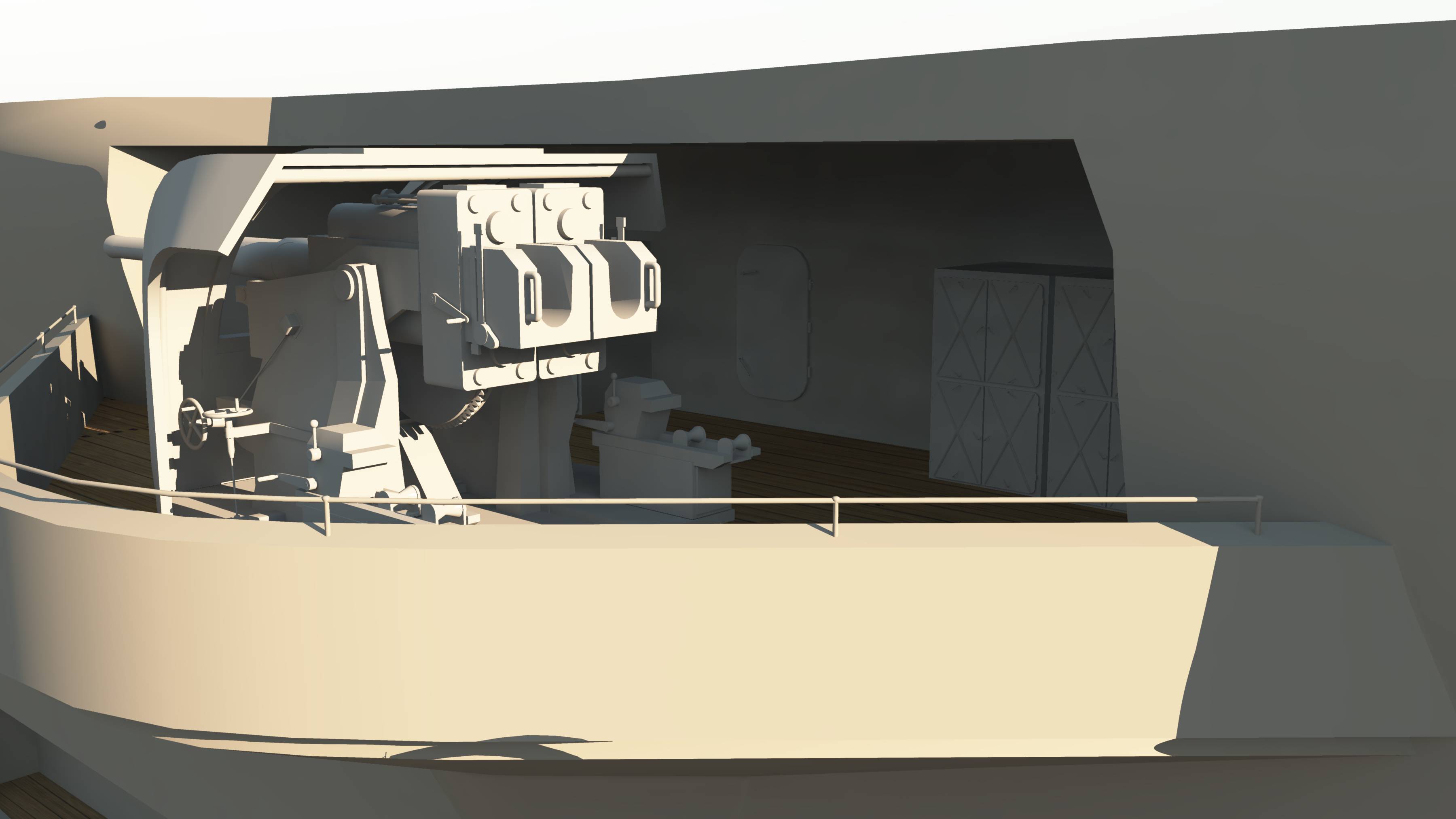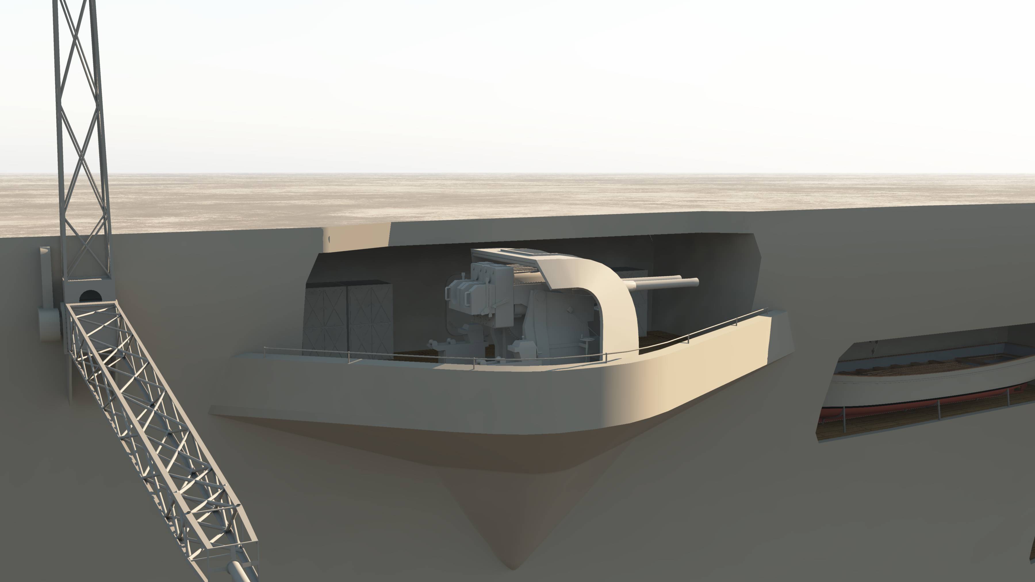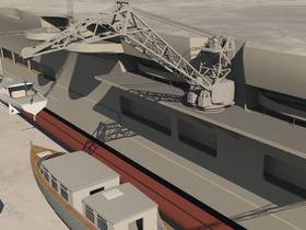 Ein Test ob es passt. Der Motorkutter für die Mannschaften in seiner Nische.